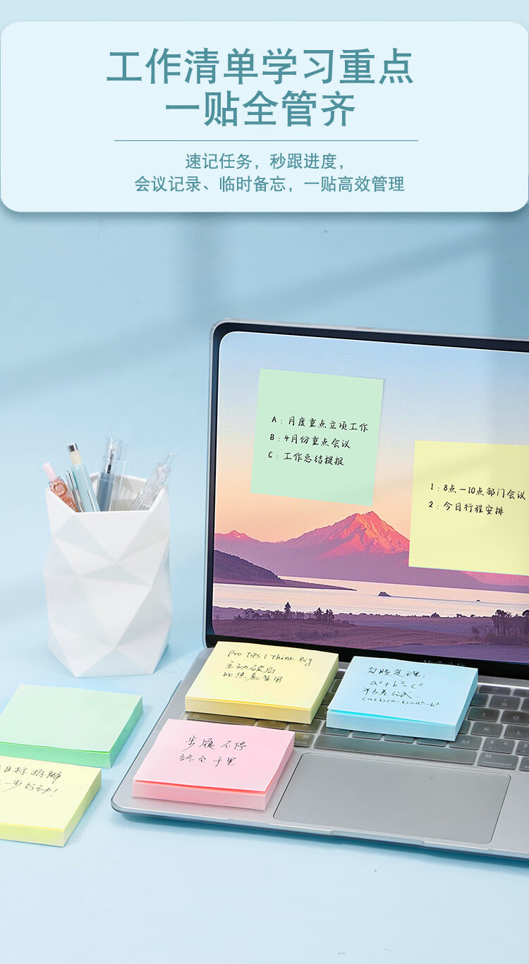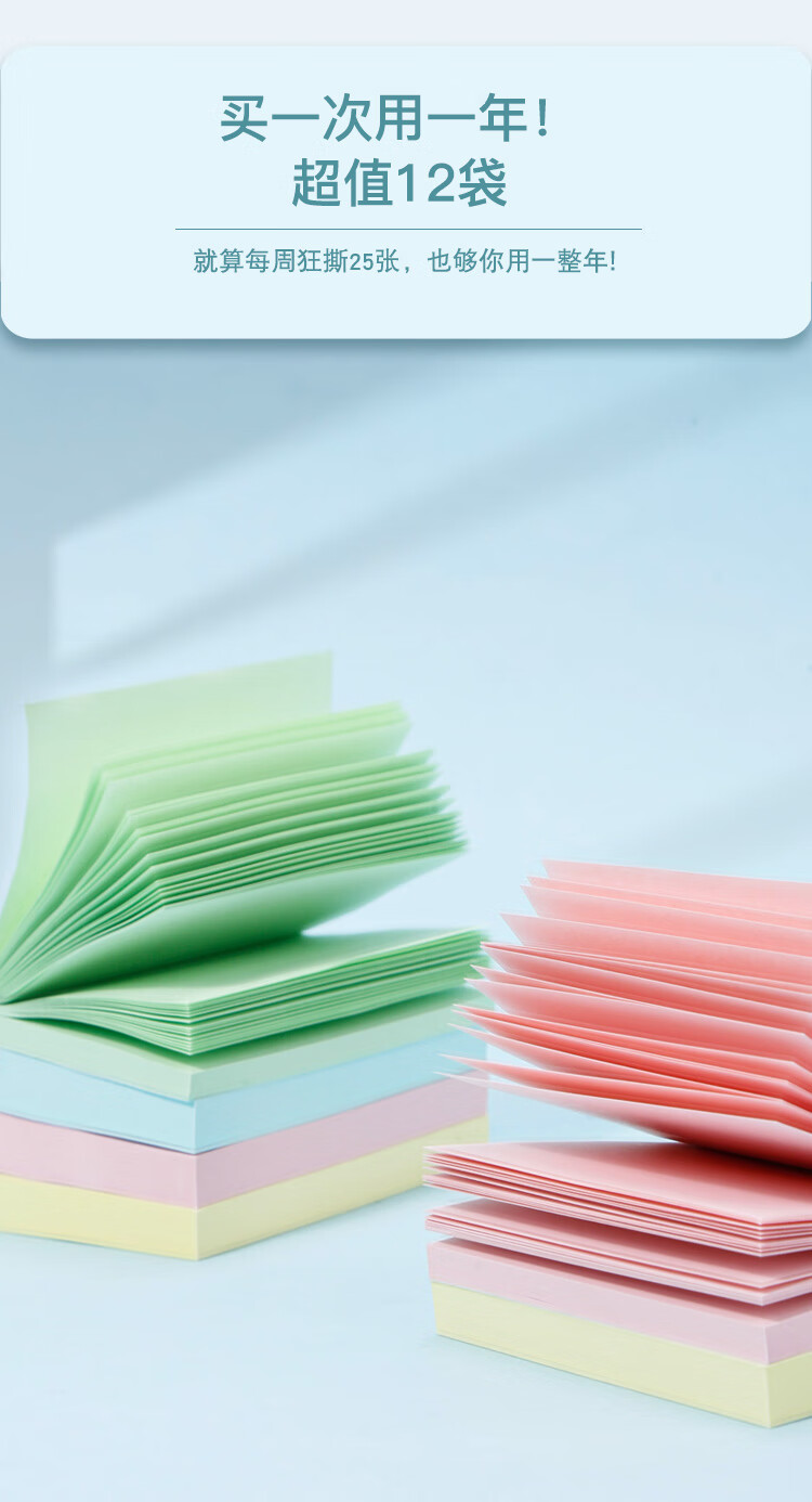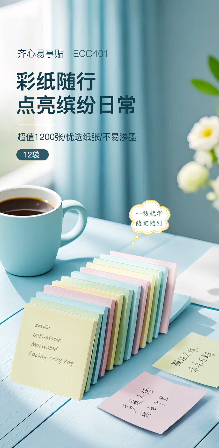齐心(COMIX)彩色便利贴12本/1200张 便签贴纸便签本易事贴留言纸N次贴(76*76mm) 开学文具办公用品 ECC401